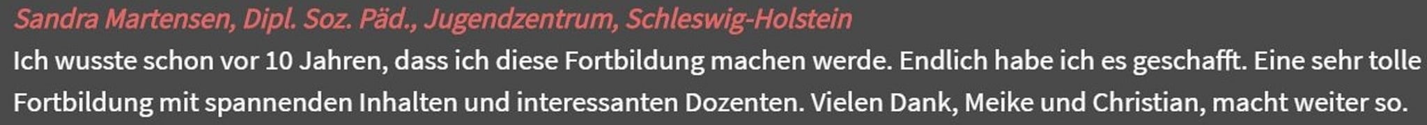 Die Ausbildung richtet sich an Fachkräfte aus der Jugendhilfe, Schulsozialarbeit, Einrichtungen für Menschen mit Behinderungen, Kliniken, Altenpflege, Psychiatrie, Jobcentern und öffentlichen